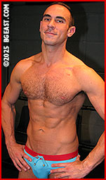 Tanner Vonn pisses Zach Reno off before they manage to exit the locker room for their match. "You sure you're ready for this," the hot rookie asks, standing close to emphasize his height advantage over Zach. Tanner shoves his hairy pecs in the veteran's face and delivers smirking slights about Zach's size. Wrangling his massive cock inside his tight teal trunks, Tanner makes it obvious he isn't just talking about being taller than Zach, either. It's one taunt too many for the infamously short-fused lightweight veteran. Seconds later, he's dragging his sultry, sexy, hairy chested opponent to the ring by a brutal side headlock.