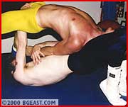 Jonnie arches in Jarret's headscissors
