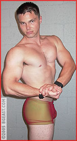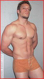 Trading in his loincloth for snug-fitting squarecuts and shorn of his legendary locks, "Tarzan" Tyler has emerged from the jungle and onto the mats with a humpy boy-next-door look. But it will require more than good looks to takedown Damien: one big and beefy brawler whose sheer muscle mass is matched by his cocky demeanor making for a mighty mean fighting machine. From the moment these two lock up, it's a battle of strength, stamina, mat wit and intense attitude. Damien uses his massive quads to pump the air out of Tyler's lungs, our ex-jungle boy goes ape. He traps the big muscle man in a series of moves that would definitely be questionable in any codified amateur match. On a roll and feeling cocky Tyler attempts to convert his ab stretch on Damien into a pin, Damien not only powers out, but makes Tyler submit in the exact same pin! Enraged by this humiliation, Tyler decides to introduce Damien to a few tasty moves picked-up from his pro matches. And when Tyler locks on one nasty back-busting boston crab, Damien pounds the mat and has no choice but to give in to the pain!