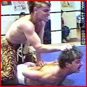 You wanna talk outrageous? Two of the biggest rule benders in the history of the BG Undergournd Wrestling Federation history got together for a one time tag team bout! TK and KL's matches against each other are themselves classics in gay wrestling. They've been clawing at each others throats for years! Katt twice challenged the Leopard for his lightweight title. Their first encounter ended in erotic fireworks. The wild Katt tamed on Private Bouts 16-18 where he had to not only submit to the Leopard's Indian deathlock but was also forced to crank himself off before being released! Their main event rematch in front of 1001 fans at 'Live at Metro' brought the house down - and their infamous, steamy private encounters and cockfights, well, enough about that - for now anyway!