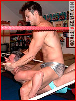 "Oh my god, look at that skinny ass! You think you can wrestle!?" Mr. Joshua begins his customary torrent of soul crushing banter before he even steps inside the ring. "In that color?! You should shoot whoever suggested you should wear those things!" While Mr. Joshua is often prone to exaggeration, there's just no denying the shocking spectacle of spiked hair Louie Lanza stretching out in the ring in front of his fitness model opponent, and although he's packing his own impressive surprise in the front of his trunks, the baby blue gear is surely the equivalent of waving red in front of a raging bull.