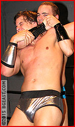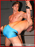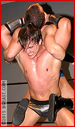 Roberts slips out of the hold and seizes the advantage, wrenching Lane's arm and using his phenomenal ass to butt drop that arm until Lane crumples to the mat. Locking on a camel clutch, Dylon is the one making this quick, securing the match's first submission! Dylon, face beaming as he secures the lead, hopes to keep the momentum going, locking up in a test of strength. Lane may have underestimated just how tough Dylon is, but Dylon is unaware that Lane uses every tool at his disposal to gain an advantage, and when all else fails, he WILL resort to dirty tricks, like raking pretty Dylon's eyes! Now that both men have the measure of the other, a truly epic back-and-forth Submissions Match takes off!
