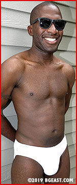 Kenny Starr looks carved from stone as he mugs for the cameras in his pouch-packing Undagear debut