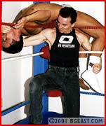 Kid Leopard stomps Ricky in the corner.....