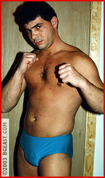 Big Rick has dragged ultra-ripped Jamie in to shut up the mouthy punk. Jamie submits to Rick?s guillotine, but flexes and comes back for more. Rick?s hot butt and Jamie?s impressive pouch gets our special attention. Lots of give and take as the bikinis get stripped and the nude grappling ends in a muscle-stretching defeat. The outcome has them both hard, and ready to unload their huge (and we mean huge!) aching rods.