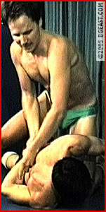Kevin West fantasized about wrestling Kid Leopard, and his long letter and picture piqued KL's interest. When the two finally met on the west coast, his interest went way up- you couldn't help but notice. Kevin armbarred, hammerlocked, scissored and nelson the distracted stud-star for 6 full minutes before he snapped out of it. Look out! KL subjects Kevin to 10 consecutive submissions, each more painful as Kevin eggs him on to be more forceful! From wrestling toy to more, Kevin soon gets stripped and has his humpy butt showed off. Submissions galore and more!