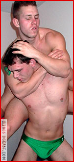 But Brendan hasn't completely earned his degree - yet! There are many more lessons he needs to learn and which Aryx feels compelled to impart. Dr. Quinn wants to make sure his young student knows his every body part's weakness, and methodically goes to work on the screaming boy next door. But according to Dr. Quin, Menacing Man, young Brendan hasn't quite made a passing grade yet. he still has some defiance that needs to be stomped out of him before he can pass total submission. Dr. Quinn's patience and perseverance (and pleasure!) seem to know no bounds. Brendan's occasional indignant defiance only feeds Aryx's appetite for destruction, and that long, lean back is an obvious next area of academic attention. "What are the two magic words?" Dr. Quinn asks his victim, only to be answered with an angry "Fuck you!" Oh dear.... "Wrong answer," Dr. Quinn replies, and embarks on the next part of the syllabus. When Brendan finally shouts out the 'correct' answer, Dr. Quinn leaves the next hold on just a little longer to make sure the lesson has sunk in! And just when you think Dr. Quinn is finished with his pupil, he decides to make yet a few more scholarly points. Evidently repeatedly beating sense into his hapless, helpless student just isn't enough! "Now how am I going to get through to that thick skull of yours? Hmmm?..." Maybe some piledrivers and other assorted head-bangers might work! The only thing that will satisfy Dr. Quinn is total and unconditional surrender!