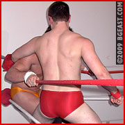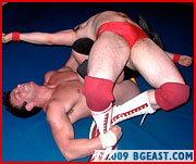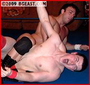 A bouncing bow 'n arrow earns another submission, but when Dick mounts him and slams punch after punch into his head, Mike realizes this isn't about winning or losing, it's about survival. A desperate low blow of his own to curb the onslaught, and Mike's in kill-or-be-killed mode. Slingshot/clothesline combos in the corner lead to a rolling single leg crab that has Dick gaping and gasping in shock on the verge of tapping. But Mike wants to take Dick down a peg or two for all his early face punches, body blows and gratuitous punishments. Can Mike dig deep and take revenge as well as a first BGE win, or does Dick suplex, slam, and repeatedly rack him in retaliation for daring to fight back? Both beautiful and brutal!
