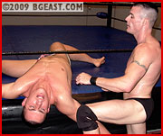 He takes the battle to the cunning Cole, moving through a rapid-fire display of holds culminating in a breath-taking, rib-crushing cross body scissors! But his next move backfires when Cole stops him dead in his tracks with a cowardly low blow. Cole concentrates his assault on Alexi's lower back capping it off with his patented spine-cracking speciality back-to-back bow and arrow. Smelling blood in the water, Cole follows up with a bodyslam -- somehow Alexi staggers off to a corner -- not the smartest of moves because now he's cornered and trapped! Cole launches into an all-out assault on Alexi's abs! Like a cat with a mouse, Cole toys with the Russian before finishing him off. But Alexi hasn't come this far up the BG ladder or traveled all the way from New England to Florida to have all his dreams dissolve just minutes into the match. An impressive suplex slam leaves Cole twitching in the center of the ring -- and after some more back torture, it's Alexi standing triumphant mid-ring!