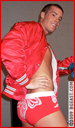 Kirby is hot for revenge. He wraps Camâ??s body around the metal ring post and stretches it into a C-shape in his bow and arrow. Desperate, Cameron chomps down on Kirby's hand to gain his freedom! Cameron uses this distraction to grab Kirbyâ??s leg and slam it into a nearby locker. Cameron continues to punish Kirbyâ??s leg hoping to pummel it into submission, but Kirby strikes back with an uppercut right up between Cameron's legs, a direct hit into the babyfaceâ??s groin! The intense struggle ensues until one young star gets DDT's off the ropes into the mat face first not once, but twice! The double headbangers are followed up with a neckbreaker, knocking the loser completely out cold! Planting a boot on the loser's chest, the winner strikes 10 poses of victory, flexing all his different muscles and admiring his handiwork in the mirror. Definitely a knock-out performance!!