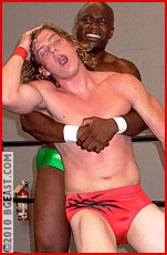 Bad Boy Beautiful Bobby Horton grovels on the mat after taking a beating from Titanic Tyrell Tomsen
