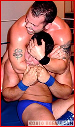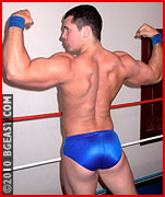 On the other hand, there are the well-known pleasures of seeing a tried-and-true muscle daddy beat the living crap out of a handsome mannish boy! Do we really want to see this particular underdog come out on top, when there's so much to enjoy in watching him sweat, suffer, and submit to the iron will of a master heel like Barzini? The outcome of this match is one we find particularly gratifying, delicious even! If you like old-style, old school indy and tv wrestling from days gone by, this match is one hot thrilling throwback!