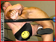 Act three of this debacle completes Rio Garza's humiliation. Balls bashed, neck throttled, ribs kicked, spine bent back till it pops. Relentlessly Jonny pushes for the record for the most submissions in a single contest (Guinness has not yet returned our calls). The beauty of Rio's agony matches the beauty of his physique, and Jonny achieves his own sort of grandeur through his ruthless and infinite drive to dominate and punish the haughty. You don't see extraordinary ring action like this anywhere else but BG East.