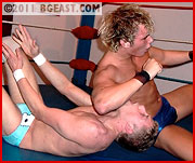 Shannon starts the match aiming high, going for Caleb's neck. But an ambitious offense isn't worth much in the ring with Brand unless you've got a surefire defense against the man's vicious and relentless assaults. By far, Caleb is the better strategist. By going for his man's arms and legs first, he ensures that Shannon is going nowhere later. Once there is hardly any possibility of escape, having reduced the victim's legs to throbbing paralysis, Caleb progresses to even nastier assaults on the rest of the man's body. You have to admire the way Embry withstands the full force of Caleb's violence and still gamely comes back at him, intent on giving the burly blond tit for tat. But then Caleb Brand is a wrestling god, by any measure -- a malevolent wrestling god, for sure -- and long, lean Shannon Embry has got to face the fact that there's just no combating a force of nature.