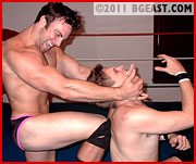 Three: Craft. Heroes and heels alike need know-how. They need to be proficient at many holds, strong and fit, and constantly alert. Whatever else he may be, Dick is a specialist in domination, punishment, and perseverance, but then so is any good wrestler. Pete, too, knows his way around the ring. Dick and Pete both are highly skilled. The difference is craft, as in "crafty." Bad boys are always scheming. They know all the moves, but they specialize in the crippling ones. It's not enough for them to master all the holds. They need tricks, too, the more underhanded and vicious the better. They are artisans of distraction, cruelty, humiliation, and cowardly escapes. Dick Rick is one of the best in the game - in a league with Mr. Joshua Goodman and Mikey Vee - and to watch him at work in the ring with Peter Owens, no slouch in taking care of himself in a fight, is to witness the kind of top-shelf mayhem we have come to expect - and cherish - from BG East.