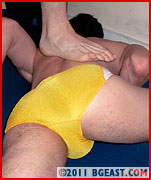 Showing a emerging heel streak that was only hinted at in his earlier matches, Chris targets Jean-Luc's ample and inviting bulge for special attention and abuse. He repeatedly tortures that sexy sack until sexy suffering Jean Luc is immobilized by the intense and ever-increasing pain emanating from his bulge and coursing through his mind and body! With his sexy singlet peeled down to expose his well-defined torso, Jean-Luc knows it's now do or die and decides to go on the attack. But he finds himself caught in a nasty full nelson! The submissions are coming faster now, and as Jean-Luc tries to collect himself, to make a comeback, Chris shows he will have none of that! Humiliation time!