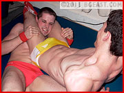 The match keeps getting dirtier and nastier and sexier- holds are held longer, ball grabs traded back and forth, cruel laughter accompanying brutal submission holds, contemptuous ass slapping - but the nastiness seems to bring out the eroticism in each of them. And the winner is definitely going to be taking his prize starting with a sizzling liplock...