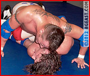 Few wrestlers are as colorful as Jobe or so full of heart as Bobby. It would be a big mistake for either man to underestimate the other. Jobe is crazy enough to try anything, even if it puts himself at considerable risk. Bobby is at his physical peak, longing to prove he has the fighter's moxie to go with his dashing swashbuckling good looks. Jobe and Bobby lose buckets of sweat and spare each other no amount of abuse to make this tough and sexy bout a benchmark in BG East showmanship. A definite mind and wad blower!
