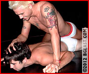 In the mat room, Jonah Richards holds Rocco down with a schoolboy pin, inching forward so as to smash his crotch against the blond's face. Then he grabs Rocco by the knees, lifting the wrestler's lower body off the mat, and manically thrusts his crotch to his ass. Seconds later, Rocco retaliates. His left hand clutching Jonah's cock, hips thrusting and twisting, he wangles a submission with a tight headscissors. In a frenzy of libido and competitiveness, neither wrestler wholly commands his instincts and impulses. Both are driven to sexually dominate the other, with animal lust, wild abandon, and minimal if any regard for personal safety. It's a scorpion's mating ritual, savage, volatile, debauched, and voluptuous. Neither man wants to relinquish the top position, neither can stomach the thought of yielding to the other's aggression, and neither can contain the furious drive to pound himself black and blue against the muscle and bone of his opponent.