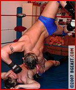 "Aren't these pretty?" Tristan taunts over his fallen foe with his big winning smile as he shows off each of his flexed biceps. He turns to the mirror and poses, showing off every inch of that perfect body. Nick might be down, but he is not out, and his own temper is starting to boil. A well-timed and perfectly placed low blow leaves Tristan sprawled and sputtering on the mat, and now it's payback time!