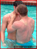 What starts in the pool ends on the wrestling mat. When the water war ends in a passionate embrace and sensual lip lock and the boys have taken things as far as they care to in the pool, they retire to dry land. Their bodies still glistening and dripping wet, Kid and Christian pick up where they left off on a padded mat conveniently located near the water's edge. At BG East you never know when a match will spontaneously erupt!