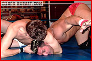 But when the relatively evenly matched Owens backs Exavier into a corner from a collar and elbow and later counters a wristlock into a headlock, his claim, "See, I told you I was stronger than I looked," may hold more than a kernal of truth truth. A face bash into the turnbuckle confirms it as Exavier wobbles on rubber legs. And when Owens not only forces the first submission with a clever half nelson, leglock combo but rises to stomp Exavier out of the ring, an upset may be in the making. "It's not how big they are; it's how hard they fall!"