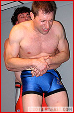Even a superstar as seasoned and experienced as Brad has limits. Brad's able to offer only the slightest of resistance and even then it's not until he has been pushed to the limits of his endurance and pride. Jeremy pulls him into an excruciating bodyscissors between his massive, muscled thighs. Brad desperately fights but to no avail, and before long he's groaning and even pathetically begging in the hold - a harbinger of things to come...