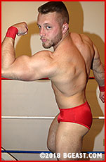 Franco Vetti is a true fantasyman; defined, muscular, lean, pretty, with sexy swagger with six-pack abs and sculpted quads bulging so far over his knees they look almost too perfect to be real. As a rookie, he might not have the ring experience that Biff has as he climbs through the ropes and goes through his posing routine to warm up and swell up his muscles, admiring himself in the ringside mirror - but as astutely and rather cheekily notes, Biff's primary experience is in suffering. Is this sexy young stud going to give Biff yet another beating, in his newbie debut, or is he just some fresh meat tossed to a lion in a cage, his physical perfection just the motivation Biff needs to finally notch a win in his own belt? Is it finally Biff's ball and Biff's game? Has 'Bad' Biff's time arrived?
