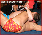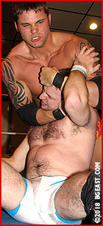 Firestorm works a punishing side headlock on the smooth, muscled pretty boy