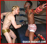 Rocky and his abs were initiated into the Brotherhood shortly after he joined the BGEast fraternity, and since then, Rocky has explored aspects of his gut punishment fetish to his heart's desire. When pro stud Leroy Blaze wants to audition, Rocky is skeptical. He's seen some of the kid's matches and doesn't think he has what it takes in that department - but like the big-hearted, smiling sadist he is, Rocky decided to give the kid a chance, figuring Leroy will be begging for mercy and run out of the ring holding his washboard abs, humbled and horrified.