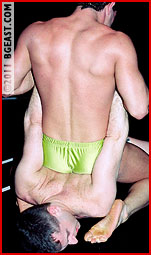 As the match gets underway in the matroom, Dick strips Danny & attacks the cocky dirty talker w/face-humping jackknife pins, and tight scissors. Dicks lean but he's powerful. Danny strikes back: crotch-humping & facesitting are followed by surprise screaming submissions by the shocked heel. This match features intense holds and intense pain. It's aggressive erotic action w/an unbelievable leg split finish! The excited winner humps and shoots his big dick on the loser's pecs and face; the loser takes matters into his own hands! Another classic Danny X-Fight!