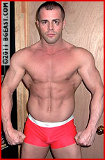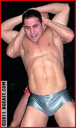 A brief pause, and even arrogant Mikey can't help but pay the game hunk a compliment. "You know, you're the first wrestler I've faced who looks nearly as hot as me". But when Jordan powers out of an abs-popping full nelson and puts the mouthy heel in a crotchsplitting grapevine/cradle, all Mikey can think to say is, "god damn!" And after Mikey claims he didn't "actually" submit to Jordan's hard-earned camel clutch, pushing the muscle model into a rage that manifests in a flurry of elbow drops and a sleeper choke, Mikey has to dig into his bag of dirty tricks. "Match me pose for pose," he propositions. Biceps, triceps, lats, backs: Jordan's in his element. But when he foolishly mimics Mikey's hands-behinds-head abs pose, customers will be hard pressed to dispute Mikey's claim: "you're big, but dumb!" Agonizing jointlocks, bodyblows and chokes a plenty with no pause between frantic tapouts, Mikey gets his revenge. "Say my name!"