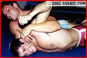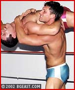 A pre-match warm-up and a post-bell test of strength affords the viewer a chance to study the impressive physiques and revealing gear - Justin in his usual baby blue and Tony in hot pink! When Justin early on succeeds with a sexy exposing submission hold, Tony responds in none-too-kind a fashion repeatedly driving his knee into Justin's gut. Both guys were victims on Jobberpaloozer 4 and seem hell-bent on establishing dominance over the other. Tony turns a top wristlock into a over-the-knee backbreaker. Justin pins Tony so tight he cannot move, let alone escape. Justin applies a rocking surfboard that gives Tony a rollicking ride to Submission City. Tony applies his leg-split specialty which has Justin begging. Justin easily hoists his smaller opponent up into an inverted body-vice backbreaker and parades his prey all around the ring. An incredibly sexy and sweaty eye-bulging ringwar.