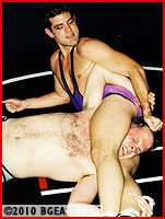 Popular Chip returns bigger & more pumped with a new tattoo, new skill and an even cockier attitude. Chip puts the mouthy matpunk through a torture-rack of holds, frustrated by his unwillingness to give! Chip loves ball-grabbing! Using a face-smother headscissors, Chip punishes the cursing, moaning "toughguy". Keith has never taken a mat-beating like this; his big mouth keeps him in trouble as he's subjugated by multiple submissions and repeated crotch torture. Nasty!