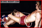 Here's a bout with two of our hottest & sexiest blondes. Tall Trevor's singlet hugs his muscles & gorgeous butt; cocky Christian's shows off every detail of his big pouch. Muscles bulge in furious action, then the two blond punks pause for a hot stare-down. Super sexy attitude, esp. Christian's punky swagger, just eggs these boys to ball-grabbing, crotch splitting nastiness. Humpy 'n' hot nude grappling, crotch to face pins, a victory emission forced from the loser: the ultimate sexfight fantasy!