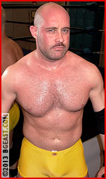Skotch English came out of nowhere a few years ago to deliver a hardcore, old school, Canadian grizzly style beatdown on an up and coming young face. The big, burly bear daddy brought his particular brand of classic, feet on the ground, head-on body-bashing that harkened back to the "good ol' days" of 70's style pro wrestling, when a sexy belly and a neck the size of a sequoia could beat the pretty right of just about anything. His lengthy tour of Yank indy promotions finally brought the snarling Canadian back our way, and he specifically asked for one of our prettiest wrestlers to pick up where he left off.