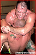 Another wrestler might have called it quits, but not Tony. He pops back up to his feet, ready for more! He digs deep into his arsenal, and the battle rages back and forth, their bodies becoming drenched in sweat, their breathing labored and heavy. Tony's not going away quietly, and Brook finds himself in danger of submitting! His awesome strength helps him to power out of danger time and again, but Tony comes back, reversing the brutal holds Brook has used to definitely break other wrestlers. And with an awe-inspiring banana split, Tony manages to even the score - and get some respect from his cocky foe.