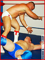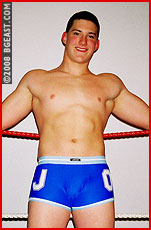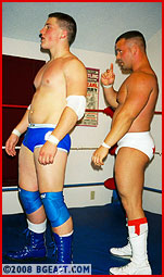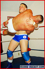 You never really want to make a bulldog mad -- especially one with a mean streak like Barzini's! Other opponents have made the mistake in the past of thinking a submission or a pin over the Bulldog paves the road to victory. They forget that Barzini is not only built to take it but even enjoys it! Jaxx takes a couple of ring-rattling body slams followed by some horrendous chops while trapped in the corner -- and then its time for yet another big Barzini boston crab. But even after the rookie screams out his final submission, the Bulldog isn't finished with him yet. It's not enough to win -- he needs to teach Jaxx a lesson about what exactly it means to tangle with the big boys! And what it means to be a BGEast wrestler!