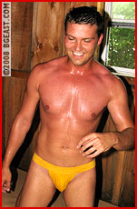 Take two hot guys, on a hot humid day, place them in a small confined space, and tell them that only one of them can walk out in glory. That's a recipe for explosive action'and AJ and Jake do not disappoint on that scale. Within seconds of circling each other, they are tearing each other's shorts off and stripping each other down to some incredibly sexy and skimpy underwear'a thong that shows off Jake's assets, a jock that leaves little to the imagination about the bounty of AJ's body. School boy pins aren't humiliating enough for these two'each in turn also yanks the other's head up by the hair into a musty, sweat-soaked crotch! And the taunts!'these two clearly want to not just defeat the other, but humiliate him!