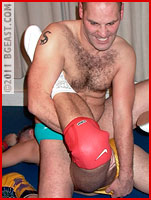 Full of spunk, Paul seizes the moment Neil is almost handing him, grabbing a muscled leg and pulling Neil down hard to the mat, then giving him a couple of quick, vicious stomps to the hamstring before tying up the weakened leg and the opposite arm. "Come on, tough guy," Paul taunts as he grabs Neil by the chin and yanks his head back hard as well. Neil struggles stoically, and even when he finally manages to wriggle out of Paul's powerful grasp, it's just an opportunity for Paul to slip him into another brutal, shoulder-wrenching pain-hold, followed by a sleeper! Wanting to inflict some more punishment, Paul lets go to land a series of forearm smashes and gut punches! Just when it seems like Neil will be unable to take any more, he turns things around with a stunning fightback.