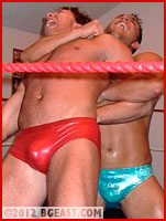 Nipple twisting, choking with a phone cord, and one nasty low blow after another push both bad boys to the edge. It's not all dirty tricks, of course. These are two dangerous wrestlers and not just because of the shortcuts they take. They both unleash one bone-crunching, pride-stealing hold after another, demonstrating that when a BG bad boy meets his match in underhandedness, it takes raw, brutal, high impact action to leave just one of them left standing in front of the mirror. A pile driver leaves one wily hunk out cold once and for all, and the other one admiring every inch of his hard, hot body, asking the really important questions, like: "Why can't a man appreciate his own butt, that's all I can say?"