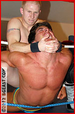 Joe likes to say he never quits. Paul is determined to put the lie to that boast. However much Joe suffers, his pride won't let him tap out. The combination of Paul's berserk fury and Joe's swaggering ego appears to leave only two options: Joe must find a way to turn the tide back in his favor, or Paul is going to totally destroy him in the ring. This match marks a high point in the Catch Weight series, exemplifying the best that mixing guys of markedly different weights has to offer. The outcome and last five minutes of this match will definitely have an impact on you. It is a defining moment for both Robbins and Hudson, and for sheer intensity and drama, one of the most entertaining climaxes in underground wrestling. But, then, you would expect nothing less of BG East.