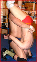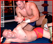 Sexy Scott Starr immediately goes on the offense, turning Shannon Embry's pale face bright red in a side headlock. Scott has an obvious weight advantage over lanky, lean pro Shannon, and he's not ashamed to throw that weight around and toss young Shannon across the ring. Scott's eyes grow wide to see acrobatic Shannon instantly bounce back to his feet like a rubber ball. The sexy Southerner pounds his fist into his opponent's chest, driving him back down to the mat with disgust. "I don't know where you came from boy, but that kind of stuff is just unacceptable!"