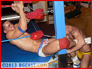 BG East brings you two of our most popular fighters, fiercely competitive, sumptuously built and "made of fuckin' iron," as Quinn says of Adamov at one point, with dismayed respect. It's spectacularly sexy and dynamically dramatic. The array of holds and moves, on the ropes, off the ropes, in the ring and out will have you bulging a big as the two combatants. Their showdown may keep you saddle-sore and walking funny for weeks!