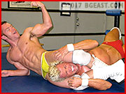 Jobe literally knocks Kid K out cold, slamming his freckled face into the mat and folding his muscled body into a small package for an easy 3 count pin. Kid K isn't quite fully conscious before Jobe locks his ankles under his arms and spins him into a screaming Boston crab, wrenching out sobs and spasms of agony to wipe away the taunting memory of that opening smirk. For you boston crab fans, this one is both brutal and devilishly delicious!