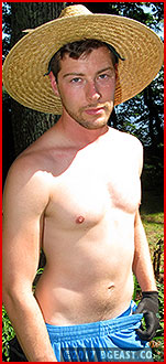 Steve Mason proceeds to do some show-off pushups while Mason Brooks moans humiliated between the sexy gardener's viselike thighs. Kneeling, with the veteran wrestler's head locked in a figure-four scissors, Steve pummels Mason's midsection, holding nothing back, but the punches are never stiff enough to quiet his wildly appreciative victim. Mason pretend-pleads, "Oh no! Please, Gardener Steve, don't hurt me!" Mason Brooks, BG's resident cocky wise guy with the impressive vocabulary.