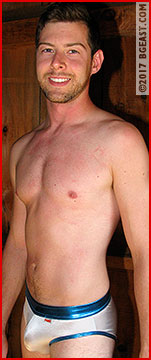 "I'm not gonna hurt you. I'm gonna, you know, persuade you that you wanna be my wrestling bitch." Mason coos the words while choking Steve out. Moments later, Steve regains consciousness to find himself stretched out at Mason's knees, while Mason strikes a double-biceps pose over him. He attacks, grabbing Mason Brooks by the balls and snagging him in a head-scissors. Mr. Brooks is impressed: "I knew you had it in you."