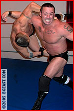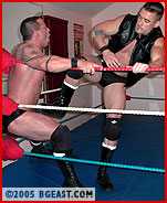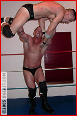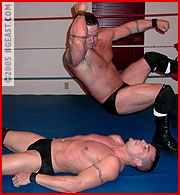 Joe preps for the match, growling, flexing his massive muscles. Donning a tight black tank top, he heads to the ring. The moment he crosses the threshold, the reason for Joe's pre-match amping is clear: Cole Cassidy. Big, mean, bedecked in black and like Joe, he's never lost a match. Between them, their victims reads like a who's who of popular hunks, tempting twinks and other alphas. "So you're Cassidy, the guy I keep hearing about," Joe admits in a rare show of respect. Cole isn't as modest: "When you've got all this, people talk." Head to head, face to face, the similarities overwhelm the contrasts. A handshake is a challenge itself, knuckles crack as both ignore the pain. "Ring that bell," Joe says, eager to resolve the unspoken, 'who's the bigger, better heel'. Cole attacks, propelling Joe into the turnbuckle face-first. "You ain't so tough!" Punches to Joe's gut, his body arched out by a hand pulling on his trunks. Cole's assessment: "I'm not impressed." Joe won't be so casually dismissed. He reverses another posting, nails two high-arcing hiptosses, and it's his turn to rant and flex: "Not impressed?!?" And when Joe presses Cole overhead, not once but twice, we suspect Cole's opinion has changed...