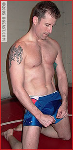 When last we saw Steven, we were treated to a glimpse of his 8 pack abs workout before being ravagely wrecked by Kid Vicious. This time around, Steven loses the boxing gloves in favor of his sexy singlet in a match against Marc Matthews. Evenly matched in weight, skill, and experience, both wrestlers set out to prove who is the more lethal lightweight amongst them. Struggling to gain the upper hand, Steven?s crotch-splitting spladle seems to effectively send Marc down the path to submission. Cranking back on the neck of Marc in one crushing camel clutch, Steven gets that all-important first submission he has been seeking. But will he be ready for the retaliation that follows?