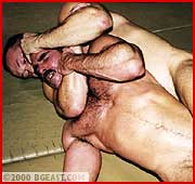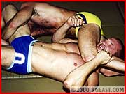 One of the percs of being a BGE star is first dibs on fresh meat and our Doug made it very clear that this handsome hairy-chested stud was HIS. Doug displays some of his new jiu-jitsu skills but Kevin is wiry and tough and has some tricks of his own. It's not long before these hot men strip each other nude and get into some very erotic body-worship. Lots of headscissors and not 1 but 2 intense sleepers!